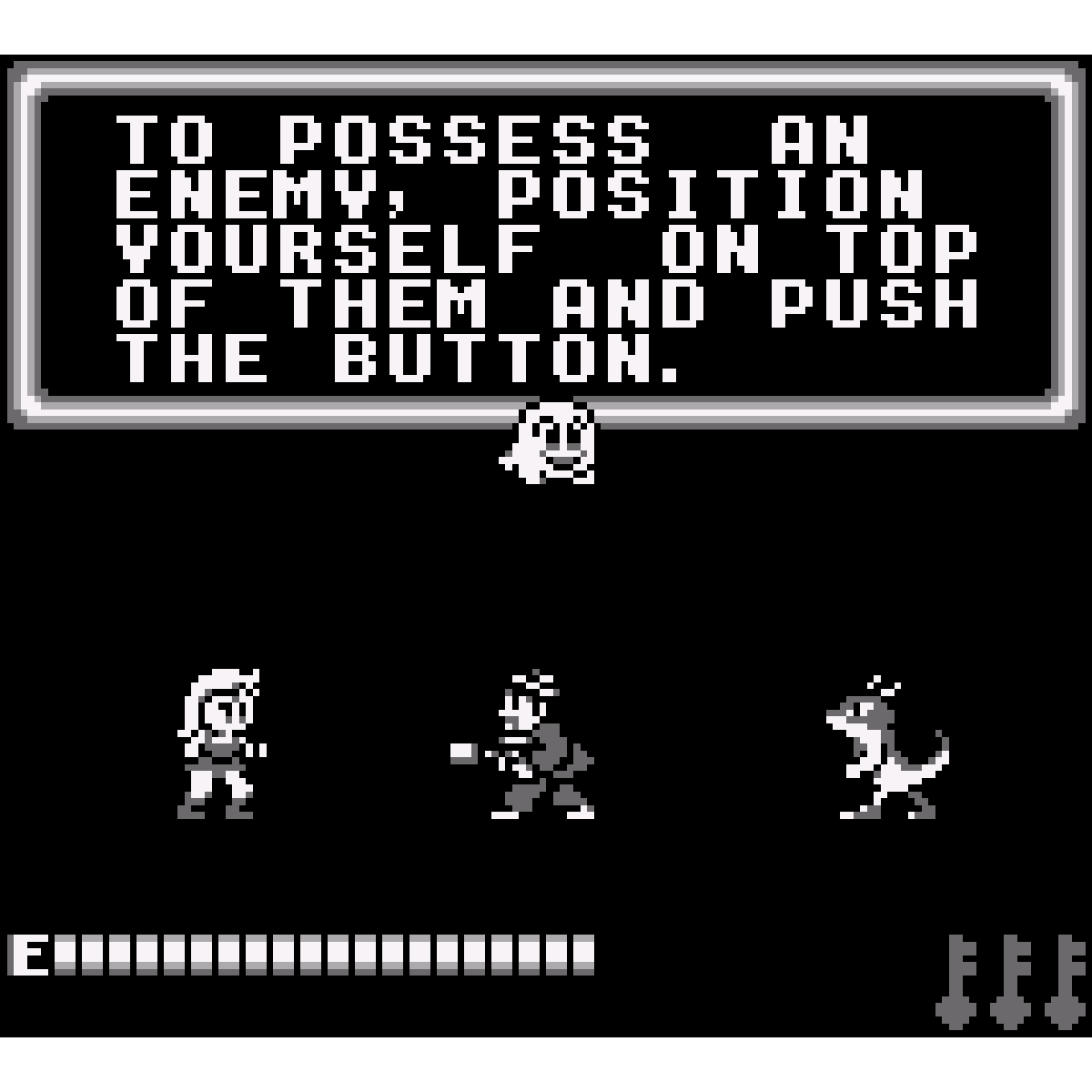 Gang members have kidnapped your girlfriend and slain you in the process. On top of that, she’s being held for ransom unless her father gives up his research on “ghost energy”. He tasks you with getting her back the only way you can - by possessing others to get things done! Defeat the gang across 6 stages by using over 20 different hosts in this action-packed portable classic!